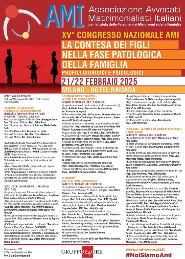 XV° CONGRESSO NAZIONALE AMI: LA CONTESA DEI FIGLI NELLA FASE PATOLOGICA. PROFILI GIURIDICI E PSICOLOGICI | Associazione Matrimonialisti Familiaristi Italiani – Per la tutela delle persone, dei minorenni e della famiglia – formazione professionale multidisciplinare forense