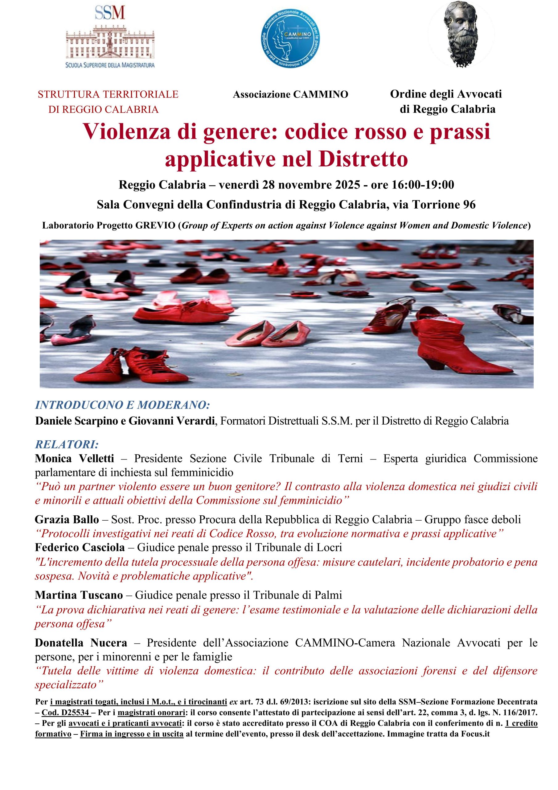 Convegno – Violenza di genere: codice rosso e prassi applicative nel Distretto